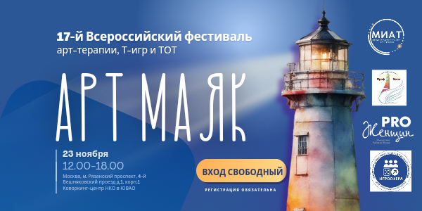 Всероссийский фестиваль арт-терапии, трансформационных игр и телесно-ориентированной терапии «АРТ МАЯК» — это уникальное событие, которое объединяет людей, стремящихся к самопознанию, личностному росту и гармонии с собой. На фестивале Вы погрузитесь в мир творчества, игры, души и тела, открывая новые горизонты для своего внутреннего мира и эмоционального состояния.